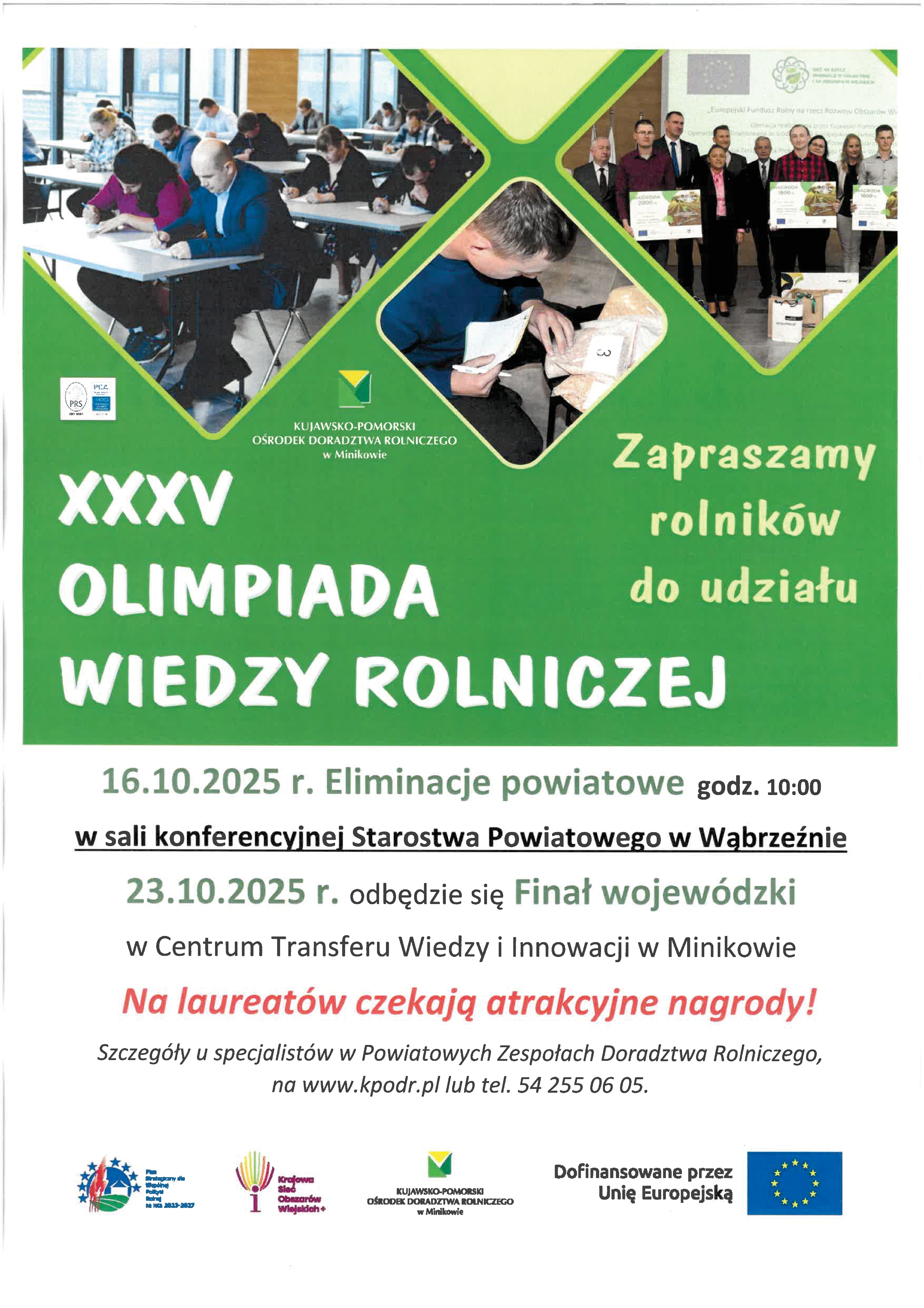 Powiatowy Zespół Doradztwa Rolniczego w Wąbrzeźnie informuje, że na terenie województwa kujawsko – pomorskiego przeprowadzona zostanie po raz kolejny Olimpiada Wiedzy Rolniczej.