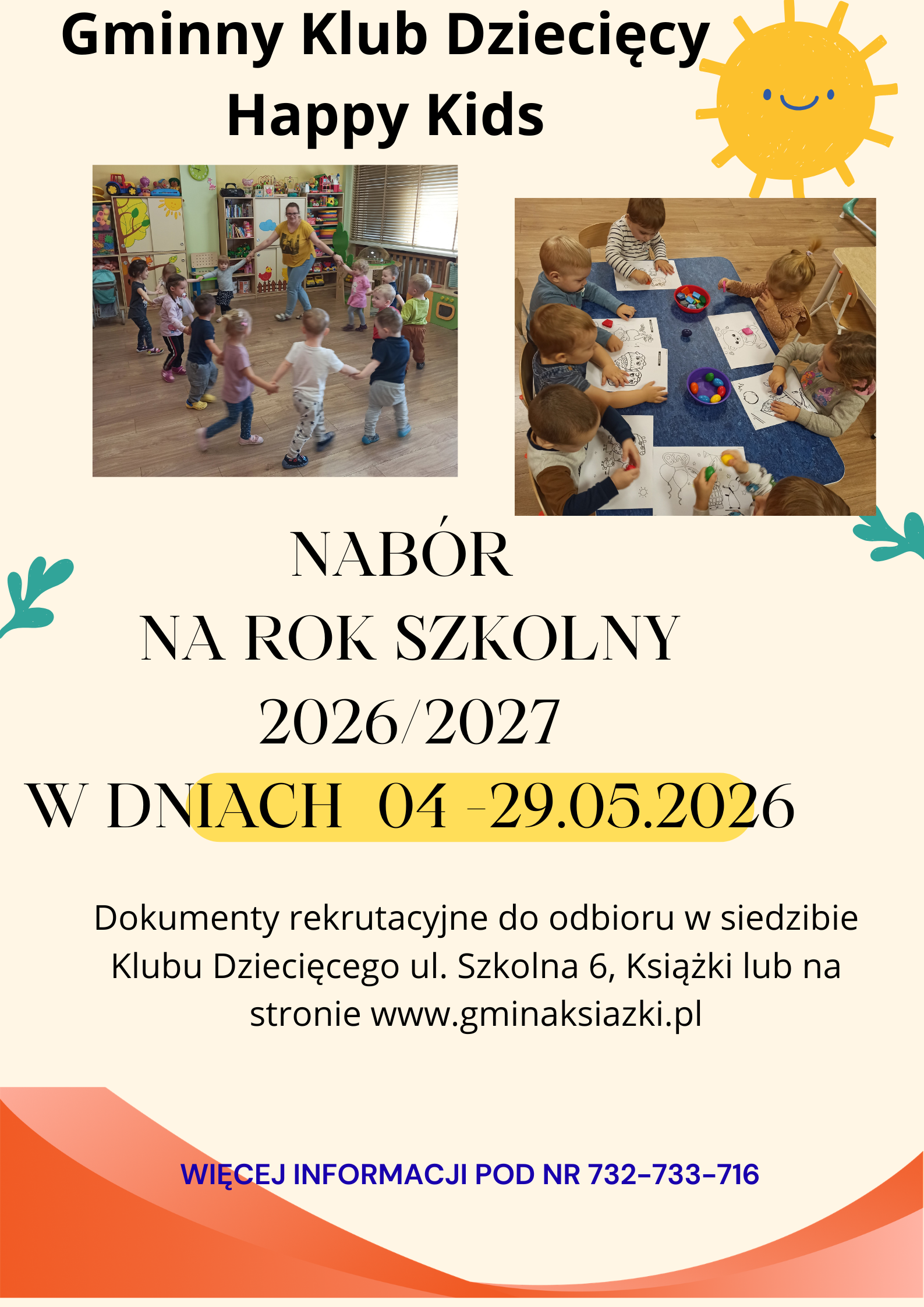 Gminny Klub Dziecięcy Happy Kids w Książkach ogłasza nabór na 9 wolnych miejsc od 1 września 2026 r.